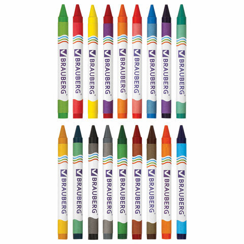 Восковые мелки BRAUBERG, НАБОР 18 цветов, 222963