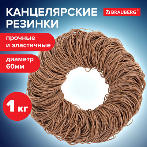 Резинки банковские универсальные диаметром 60 мм, BRAUBERG 1000 г, натуральный цвет, натуральный каучук, 440052