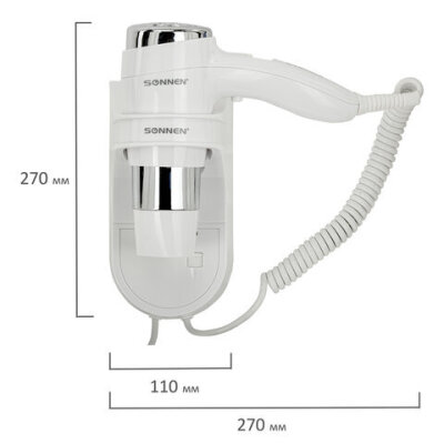 • Фен для волос SONNEN HD-2112 предназначен для сушки волос потоком теплого воздуха. Подходит для установки в гостиницах, бассейнах, фитнес-клубах, в раздевалках складских и производственных комплексов. Также может использоваться в личных ванных комнатах.