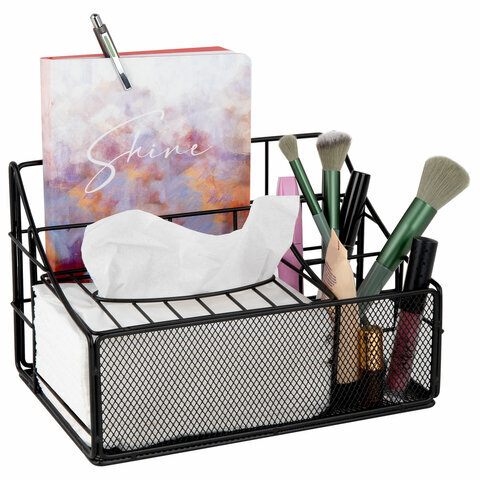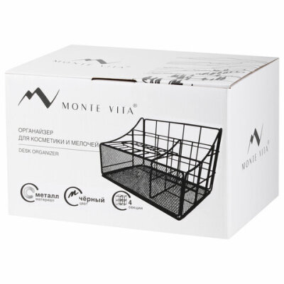 Органайзер для косметики и мелочей металлический 4 секции, MONTE VITA (МОНТЕ ВИТА), 160х240х150 мм, черный, 272480