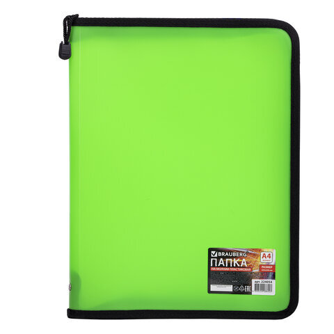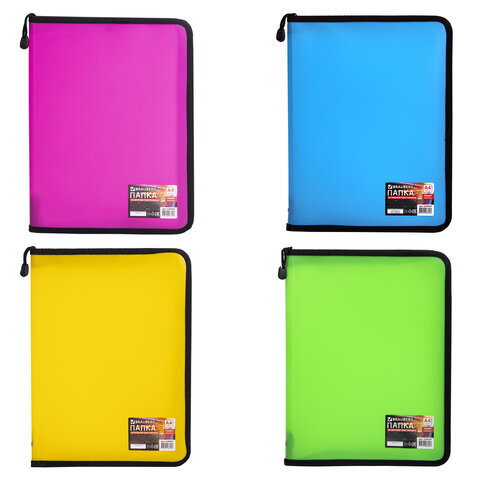 Папка на молнии пластиковая BRAUBERG, А4, 325х230 мм, 4 цвета ассорти, неоновая, 224054