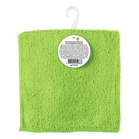 Салфетка из МИКРОФИБРЫ универсальная 25х25 см, зеленая, 180 г/м2, ЛЮБАША ЭКОНОМ, 603950