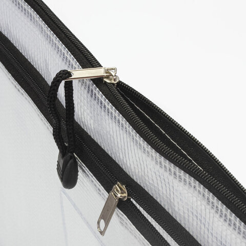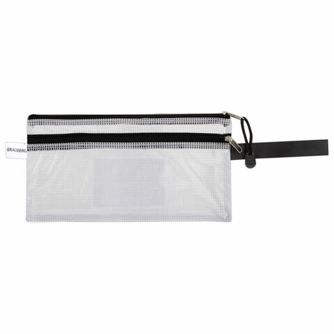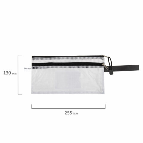 Папка-конверт на молнии МАЛОГО ФОРМАТА (255х130 мм), 2 отдел, ПВХ, прозрачная, 0,3 мм, BRAUBERG "Solid", 223891