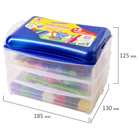 Пластилин в боксе ЮНЛАНДИЯ "ЮНЛАНДИК В ЗООПАРКЕ", 12 цветов, 620 г, скалка, 4 стека, 8 формочек, 105866
