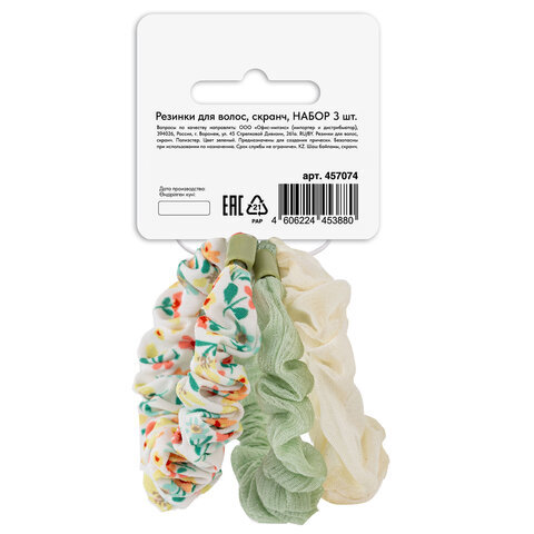 Резинки для волос НАБОР 3 шт., 3х19 см, скранч, ассорти, MONTE VITA (МОНТЕ ВИТА), 457074