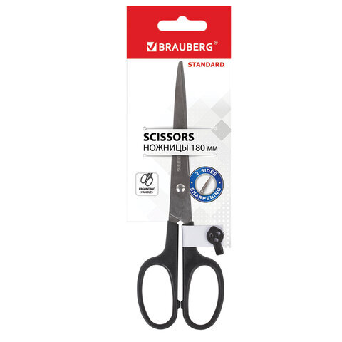Ножницы BRAUBERG "Standard" 180 мм, черные, классической формы, 2-х сторонняя заточка, 237096