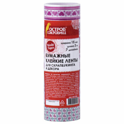 Бумажные клейкие ленты ОСТРОВ СОКРОВИЩ подходят для использования в скрапбукинге, декорирования поделок, открыток, оформления подарков. Декоративные ленты легко приклеиваются и надежно фиксируются на любой поверхности, придавая изделиям оригинальный вид.