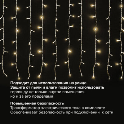 Электрогирлянда уличная ЗОЛОТАЯ СКАЗКА позволит как создать праздничную атмосферу вне помещений, например, украсить фасад зданий, так и украсить внутренний интерьер помещений.