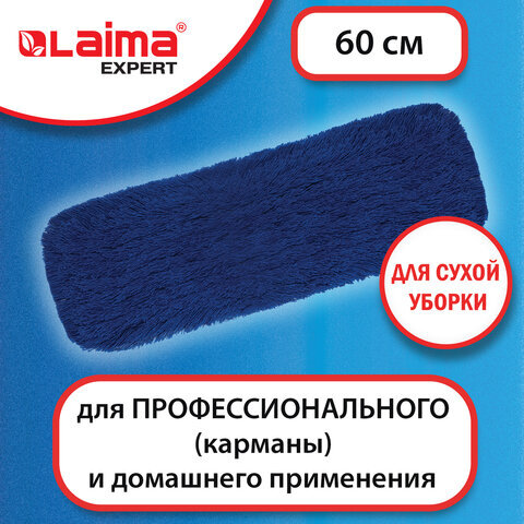 Насадка МОП плоская 60 см для швабры-рамки, карманы, СУХАЯ УБОРКА, акрил, LAIMA EXPERT, 605320