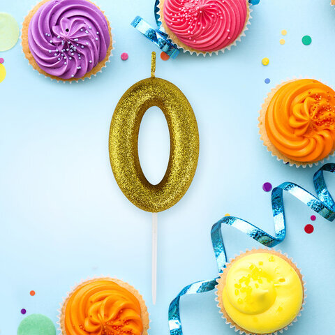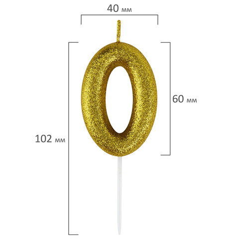 Свеча-цифра для торта "0" золотая с глиттером, 6 см, ЗОЛОТАЯ СКАЗКА, на шпажке, в блистере, 591413