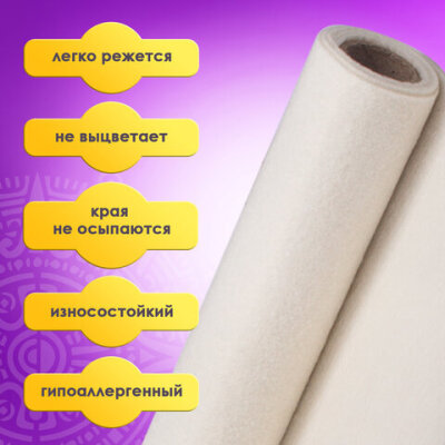 Цветной фетр МЯГКИЙ 500х700 мм, 2 мм, плотность 170 г/м2, рулон, белый, ОСТРОВ СОКРОВИЩ, 660634