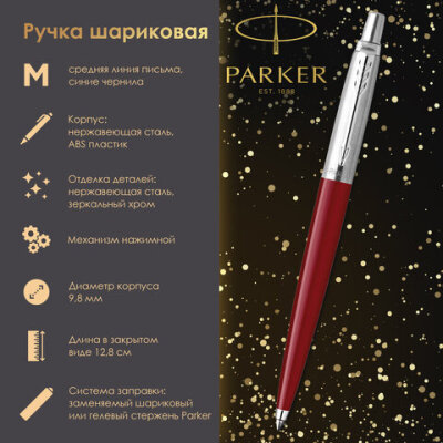 Ручка шариковая PARKER "Jotter Orig Red", корпус красный, детали нержавеющая сталь, синяя, RG0033330