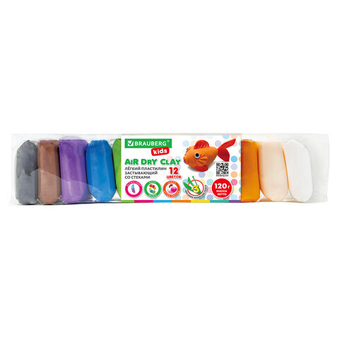 Пластилин супер лёгкий воздушный застывающий 12 цветов, 120 г, 3 стека, BRAUBERG KIDS, 106306