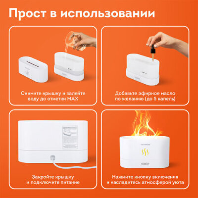 Увлажнитель воздуха "Камин", эффект пламени, 180 мл, Аромамасло в ПОДАРОК, белый, DASWERK (ДАСВЕРК), 456846