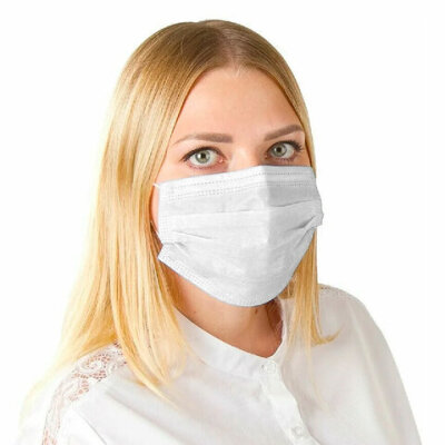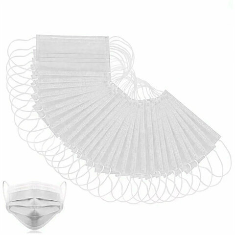 Маски одноразовые медицинские КОМПЛЕКТ 50 шт., 3-х слойные, белые, фильтр СМС, упаковка полиэтиленовая