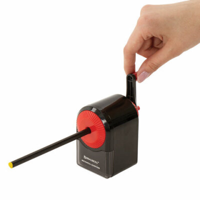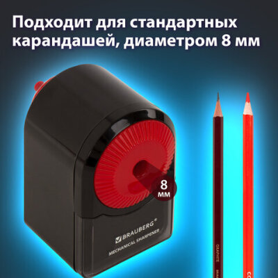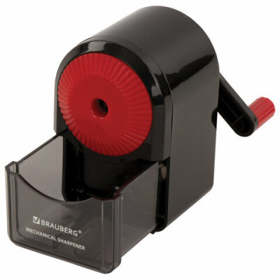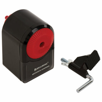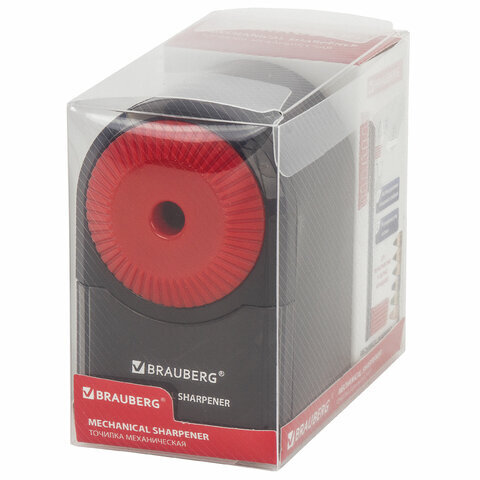 Точилка механическая BRAUBERG "ULTRA", для чернографитных и цветных карандашей, крепление к столу, корпус черный с красным, 228626