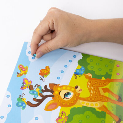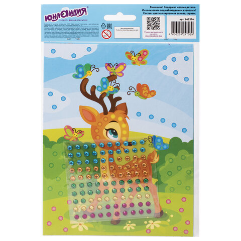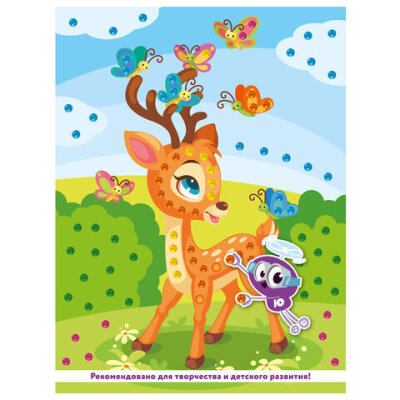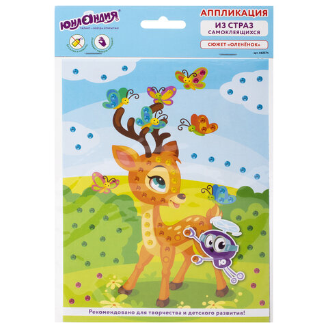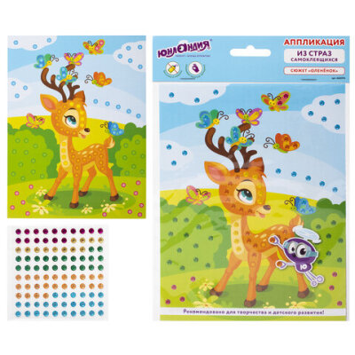 Аппликация из страз ЮНЛАНДИЯ "Оленёнок" - это весёлый и занимательный способ развития мелкой моторики, аккуратности, цветового восприятия и фантазии ребёнка. Все элементы в составе самоклеящиеся, для работы не требуются ножницы и клей.