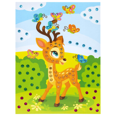 Набор для творчества "Аппликация из страз самоклеящаяся", "Оленёнок", 20х15 см, ЮНЛАНДИЯ, 662374