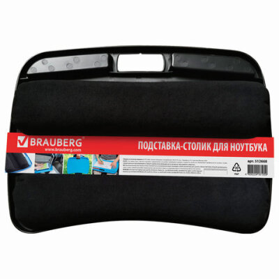 Подставка-столик с мягкими подушками, для ноутбука и творчества BRAUBERG, 480х335 мм, черный, 512668