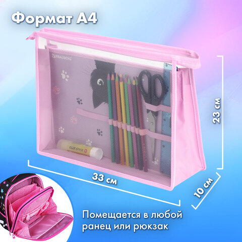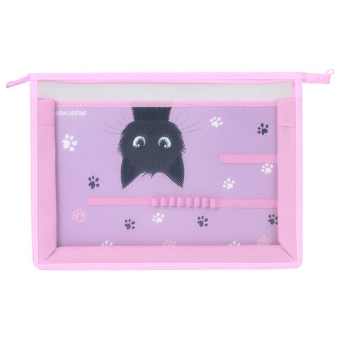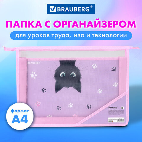 Папка для труда BRAUBERG А4, 2 отделения, пластик, молния сверху, органайзер, "Hide and seek", 273399