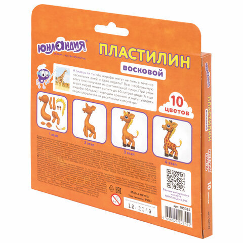 Восковой пластилин ЮНЛАНДИЯ предназначен для лепки и моделирования, способствует развитию мелкой моторики рук и пространственного мышления. Может использоваться детьми с трехлетнего возраста. Мастер-класс по лепке из пластилина размещен на обороте.