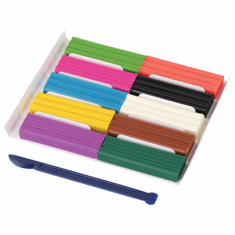 Пластилин восковой ЮНЛАНДИЯ "ВЕСЕЛЫЙ ШМЕЛЬ", 10 цветов, 150 г, СО СТЕКОМ, европодвес, 105035