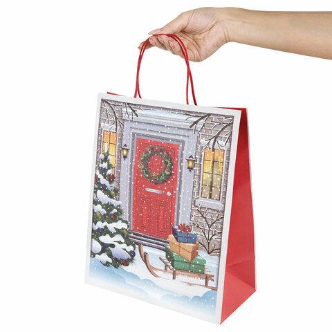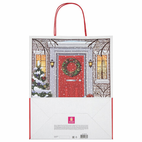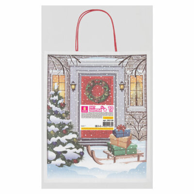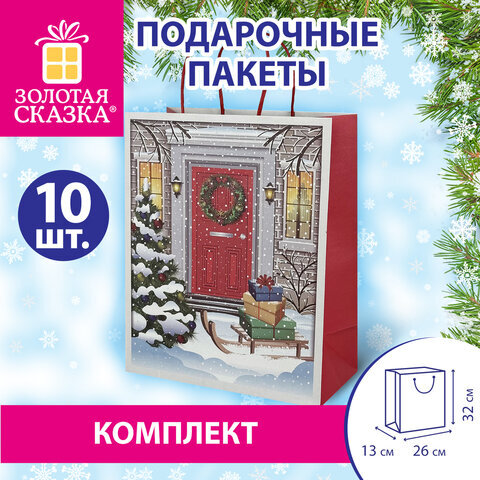Пакет подарочный КОМПЛЕКТ 10 штук новогодний 26x13x32 см, "Сочельник", ЗОЛОТАЯ СКАЗКА, 592130