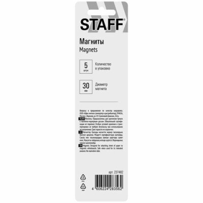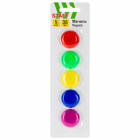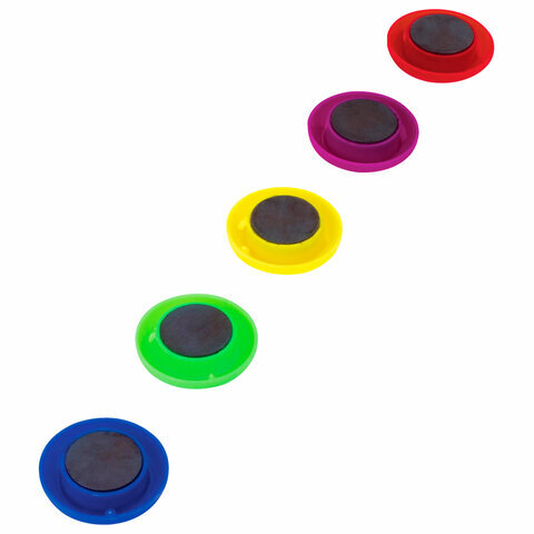 Магниты СРЕДНЕГО ДИАМЕТРА, 30 мм, НАБОР 5 штук, цвет АССОРТИ, в блистере, STAFF "Basic", 237482