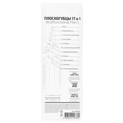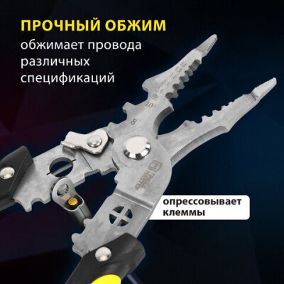 | Функции | зачистка кабеля, кримпера, разделение кабеля, резка кабеля, скручивание проводов, стриппера, фиксация предметов |