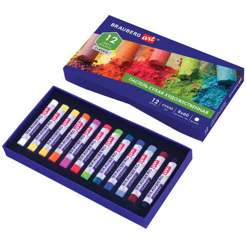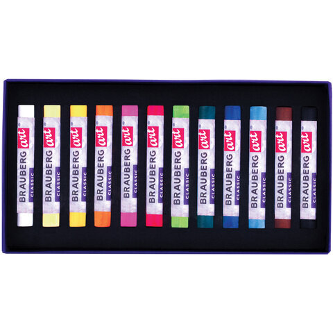 Пастель сухая художественная BRAUBERG ART CLASSIC, 12 цветов, круглое сечение, 181453