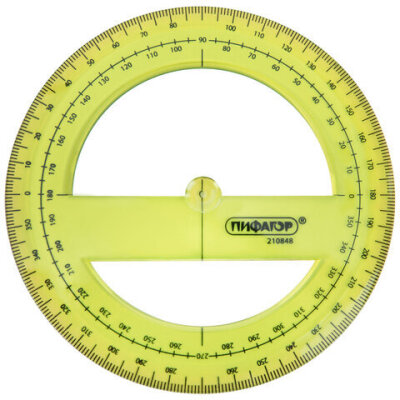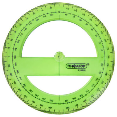 Прозрачный транспортир ПИФАГОР незаменим для чертёжных и измерительных работ.