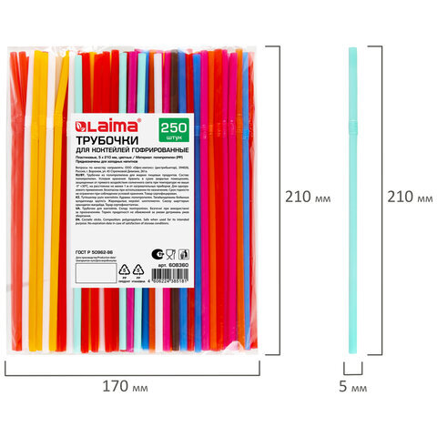 Яркие цветные гофрированные трубочки для коктейлей LAIMA отлично подойдут как для предприятий общественного питания, так и для домашнего использования.