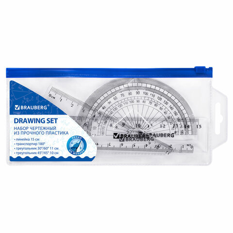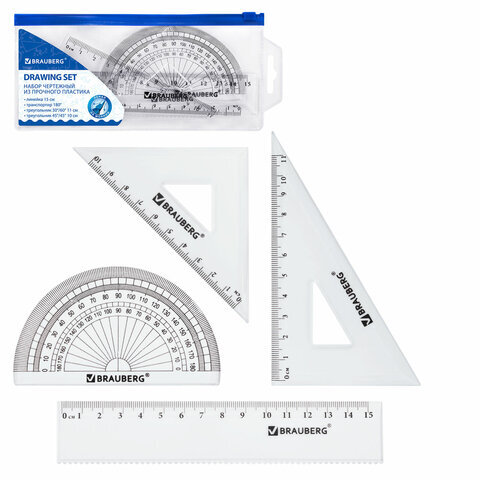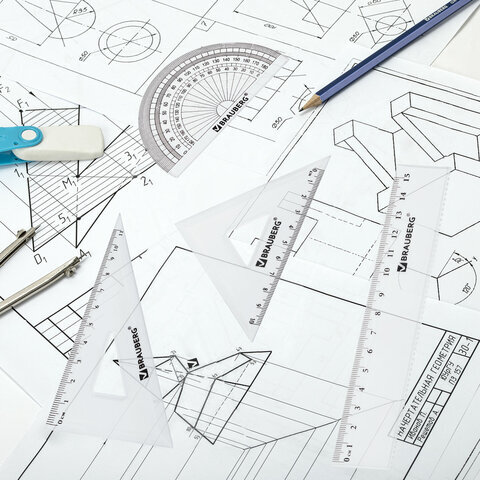 Набор чертежный геометрический BRAUBERG предназначен для выполнения чертежных работ.
