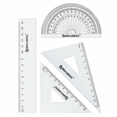 линейка, малый треугольник, транспортир