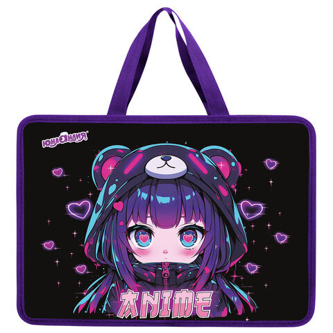 Папка на молнии с ручками ЮНЛАНДИЯ А4, 1 отделение, пластик, 80 мм, "Anime fan", 273362