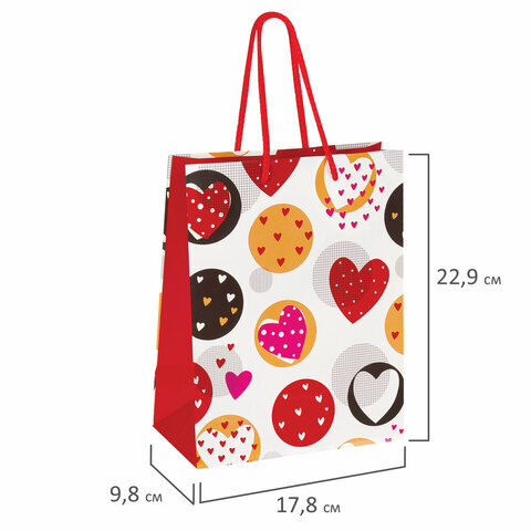 Пакет подарочный (1 штука) 18x10x23 см, ЗОЛОТАЯ СКАЗКА "Сердечки", ламинированный, 606580