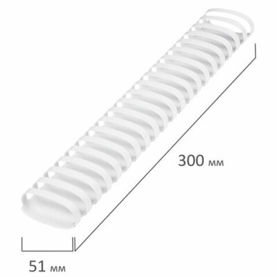 Пружины пластиковые для переплета, КОМПЛЕКТ 50 шт., 51 мм (для сшивания 411-450 л.), белые, BRAUBERG, 530935