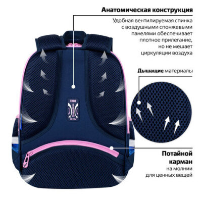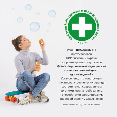 • Ранец BRAUBERG серии FIT изготовлен из легкого, формоустойчивого, экологичного материала EVA. Серия ранцев предназначена для учеников 7-11 лет. Ранцы имеют эргономичную вентилируемую спинку и фиксирующий нагрудный ремешок. Бейдж в комплекте.