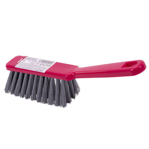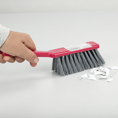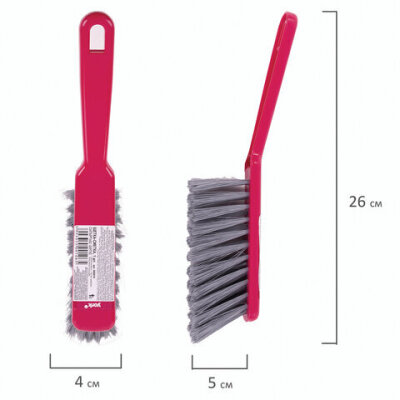 • Щетина набита под углом, позволяющим захватить максимальную поверхность. Очень удобная ручка. Щетка имеет отверстие для крючка. Прекрасно подходит к совку этого же типа. Поставляется в нескольких вариантах цвета (без возможности выбора).