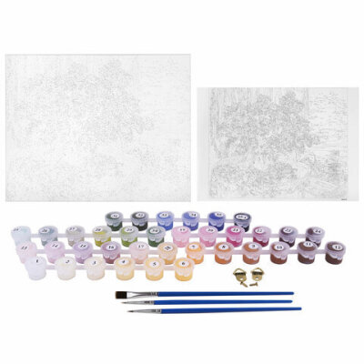| Комплектация | акриловые краски, кисть, крепеж, лист бумаги для тренировки, холст на подрамнике |