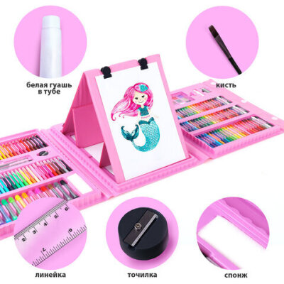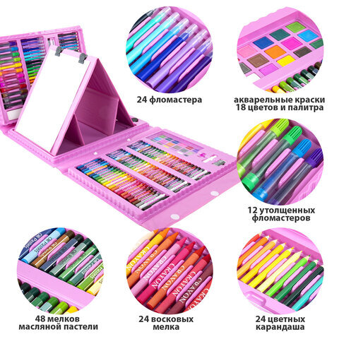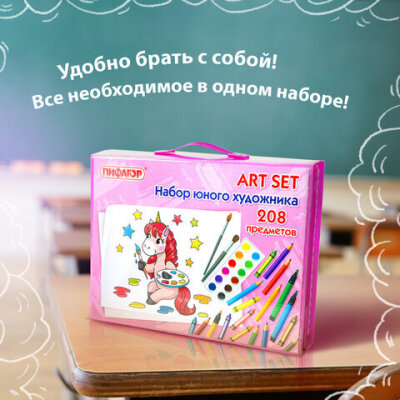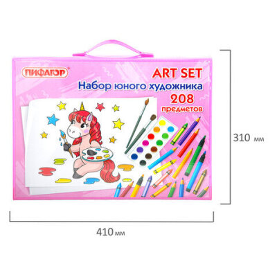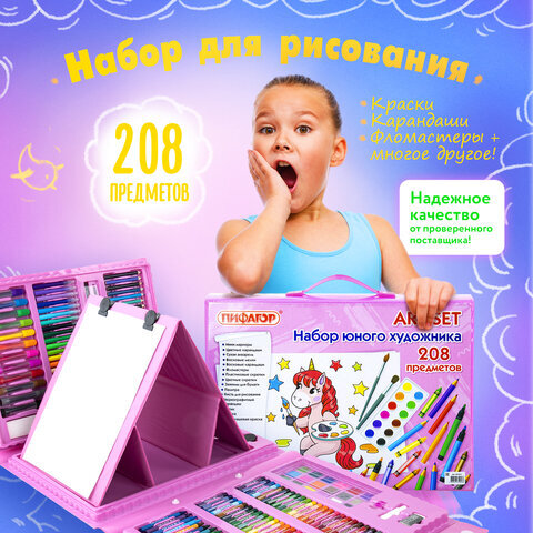 Набор ЮНОГО ХУДОЖНИКА "Единорог" для рисования и творчества с мольбертом ПИФАГОР, 208 предметов, 664631