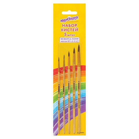 Кисти ЮНЛАНДИЯ, набор 5 шт. (ПОНИ: круглые № 1, 2, 3, 4, 5), блистер с европодвесом, 200893
