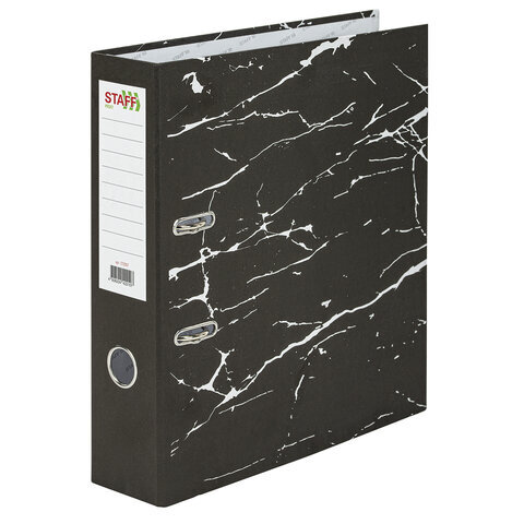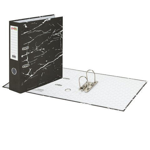Папка-регистратор STAFF "Profit" с мраморным покрытием, 75 мм, черная, СЪЕМНЫЙ МЕХАНИЗМ, 272007