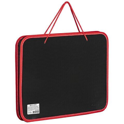 Папка на молнии пластиковая с ручками BRAUBERG "Contract", А4, 350х270х45 мм, черно-красная, 225164