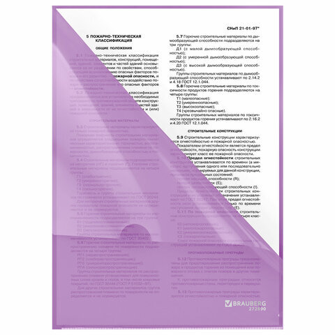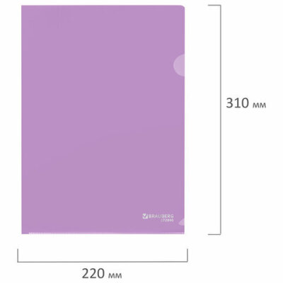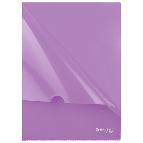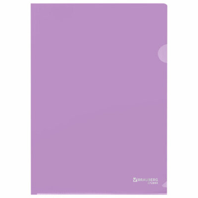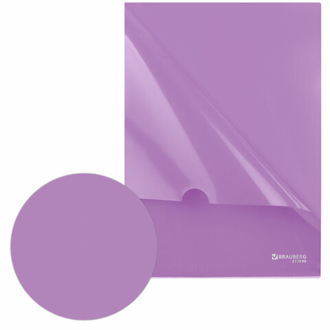 Папка-уголок жесткая, непрозрачная, А4, цвет лиловый, 0,15 мм, BRAUBERG PASTEL, 272890