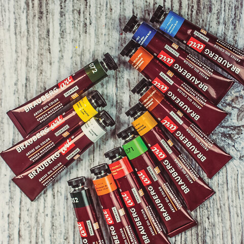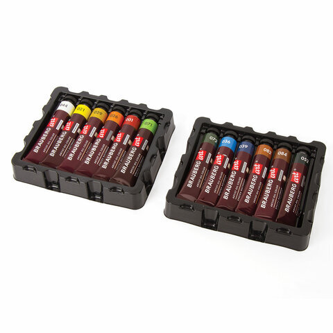 Краски масляные художественные BRAUBERG ART PREMIERE, 12 цв. по 22 мл, в тубах, 191458