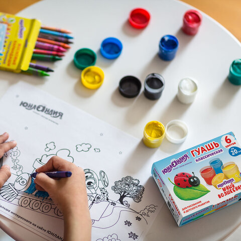 Гуашь высшего качества ЮНЛАНДИЯ поможет создать юным художникам первые шедевры. Идеальна для нанесения на бумагу, картон, дерево, стекло, керамику.