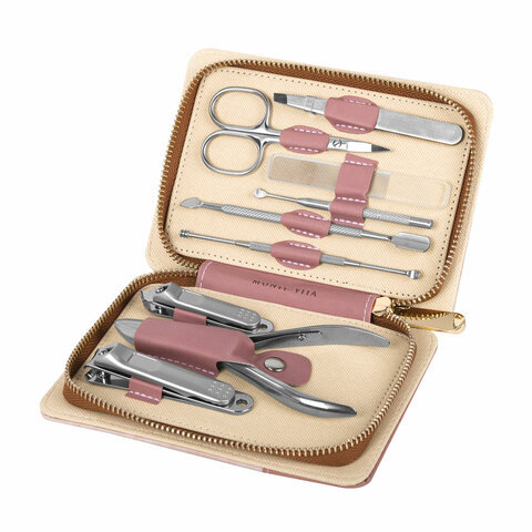 Премиальный маникюрный набор Monte Vita из 9 предметов идеально подходит для комплексного домашнего и профессионального ухода. Инструменты изготовлены из нержавеющей стали и цинкового сплава.