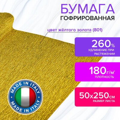 Бумага гофрированная/креповая (ИТАЛИЯ) 180 г/м2, 50х250 см, желтое золото (801), BRAUBERG FIORE, 112657