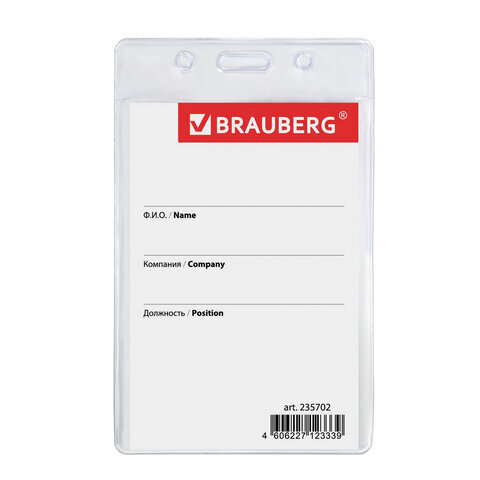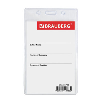 Вертикальный бейдж BRAUBERG для именной карточки предназначен для идентификации сотрудников в компаниях, а также на семинарах, тренингах, презентациях и других мероприятиях.